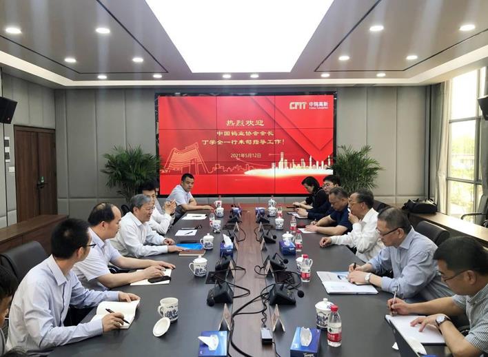 5月12日,中國(guó)鎢業(yè)協(xié)會(huì)會(huì)長(zhǎng)丁學(xué)全、中國(guó)鎢業(yè)協(xié)會(huì)駐會(huì)副會(huì)長(zhǎng)倪瑩馳一行調(diào)研公司,中鎢高新總經(jīng)理、黨委副書記謝康德,副總經(jīng)理、黨委委員高勃陪同調(diào)研。株硬公司總經(jīng)理、黨委副書記毛善文,公司總經(jīng)理、黨委副書記王社權(quán)參加調(diào)研。